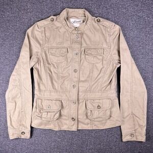 Aeropostale Denim Jacket Womens Large Beige Cargo Utility 100% Cotton Coat Aero