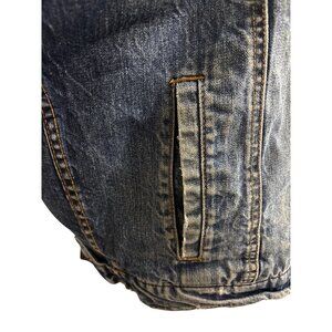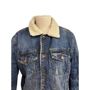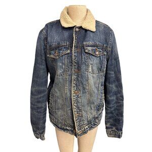 Aeropostale Denim Sherpa Jacket Upcycled Rolling Stones Hand Painted Graphic Art