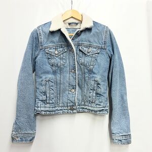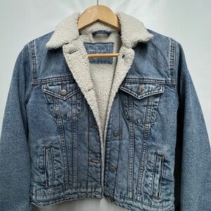Aeropostale Denim Sherpa Lined Trucker Jean Jacket Retro Light Wash XS
