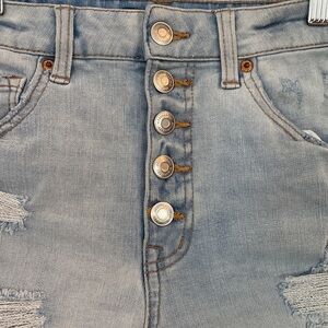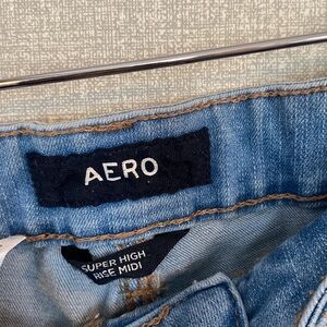 Aeropostale Denim Super High Rise Midi Button Fly Distressed Cut-off Jean Shorts