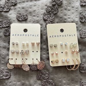 Chic earring set from Aeropostale. Features gold, silver, and rose gold hues. Ideal for versatile styling.