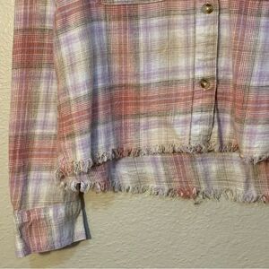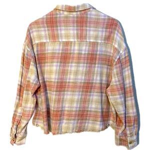 Aeropostale Flannel Crop Top Women’s Small Button Up Long Sleeve Fringe.