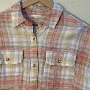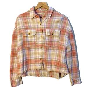 AEROPOSTALE Flannel Crop Top Women’s Small Button Up Long Sleeve Fringe Shirt