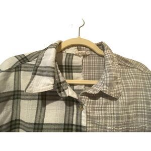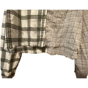 Aeropostale Flannel Cropped Ragged Hem Button Up Top White Black M