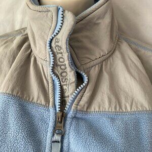 Womens Aeropostale Fleece Zip Up Jacket Blue SZ M Zip Pockets Toggle Bottom.