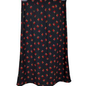 Aeropostale Floral Skirt Midi Elastic Waistband Pull on Black and Red size Small