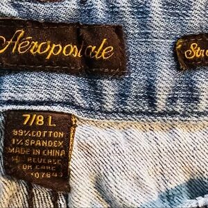Stylish Girls Flare Size 7/8 Aeropostale Jeans. Has silver rhinestone design on back pockets. See all photos.