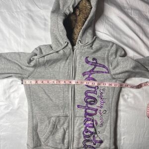 Aeropostale Grey & Purple Fur Zip Up Hoodie