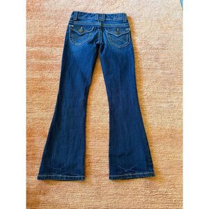 Aeropostale Hailey skinny flare jeans in dark wash. Low rise fit with skinny leg through the thigh and subtle flare opening. Classic 5-pocket styling with contrast stitching. 99% cotton with a touch of stretch for comfort. Excellent pre-owned condition with no stains or holes. Please see all photos for details. Ships next business day.