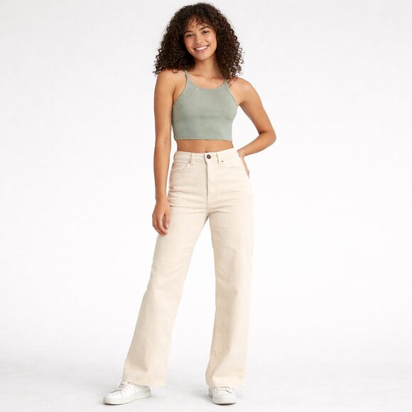 Aeropostale High Rise Wide Leg Corduroy Pants Cream Size 6