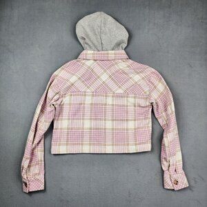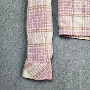 Aeropostale Hooded Button Up Flannel Shirt Womens XS Pink Check Cabincore Preppy