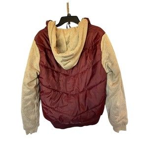 Aeropostale Hooded Varsity Bomber Large Jacket Quilted NWOT Maroon Beige