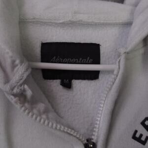 Aeropostale Hoodie Womens Medium White Zip Up Sweatshirt AERO 1987 Graphic
