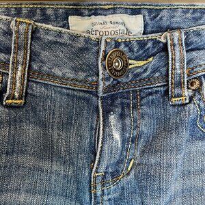 Aeropostale Jean Shorts Size 2 Womens Blue Distressed Cut Off Raw Hem