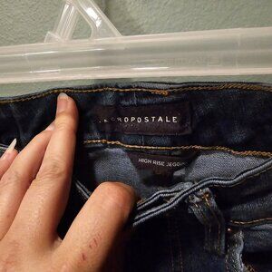 Elevate your wardrobe with these stylish Aeropostale skinny jeans made of a comfortable blend of polyester, spandex, and cotton. High-rise design.