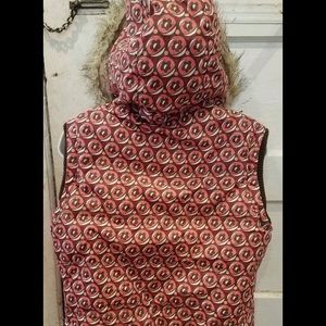 Aeropostale Jrs XL Vest Shell 100% Polyester Lining: 100% Acrylic with 100% Polyester Backing Hood Trim: 100% Acrylic Filler: Down and Feathers: 55% Down 45% Waterfowl feather. Made in China. At bottom of vest the knitting has some lint balls. *LeftPnktotedoor*
