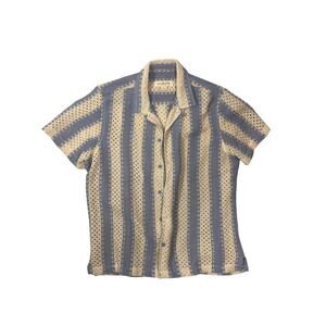 Aeropostale Knit Button Down Shirt Mens XS Blue Cream Cotton