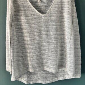 Aeropostale L White Metallic Silver Sweater Open Knit Sheer V Neck Tunic Festive