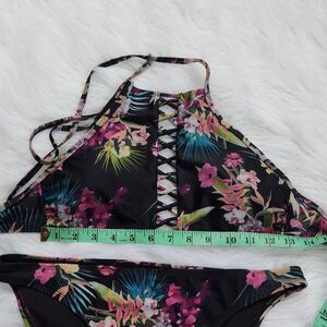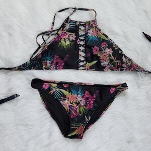 Aeropostale LLD Tropical Floral Bikini Black Floral Bottom Top M Bottom L