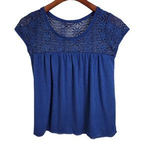 Aeropostale Lace Trim Cap Sleeve Blouse Top Blue S
