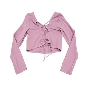 Aeropostale Lace Up Crop Top Tie Back Long Sleeve Pink Size L Spandex & Cotton