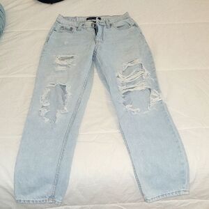 Trendy extra light blue jeans with a distressed design & plenty of rips. Perfect for casual wear.