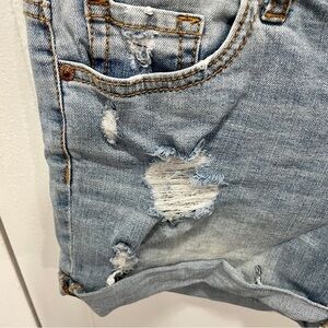 Aeropostale Light Wash Distressed Midi Jean Shorts