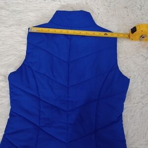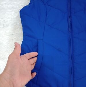 Stay warm and stylish with this vibrant blue puffer vest. Perfect for layering in cooler weather.