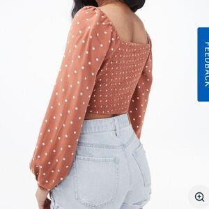Aeropostale Long Sleeve Polka Dot Surplice Crop Top Size Small