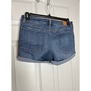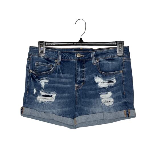 Aeropostale Low Rise Midi Distressed Blue Jean Cut Off Shorts Size 12 Cuffed