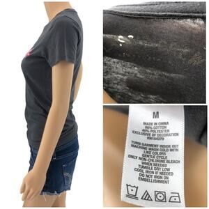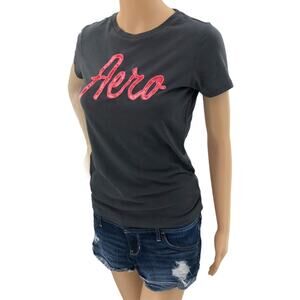 Aeropostale MEDIUM Women's Gray Velvet Cursive Spellout Short Sleeve Tee Shirt T-SHIRT Crew Neck