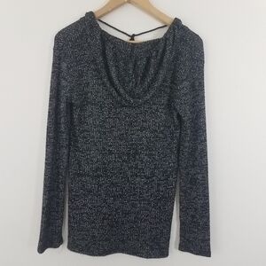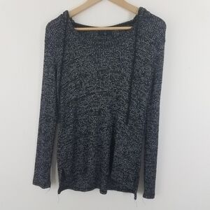 Aeropostale Size S Marled Knit Hooded Tie Sweater Black Gray Split Bottom EUC