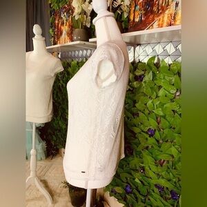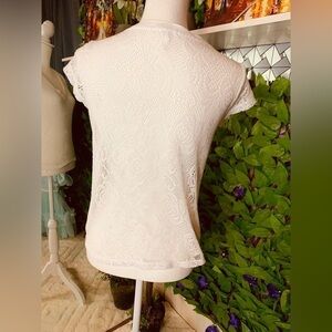 Aeropostale Medium White Lace Short Sleeve Sheer Blouse Shirt
