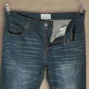 Aeropostale Mens 34X30 Jeans Driggs Slim Bootcut Disstressed Dark Blue Wash GUC