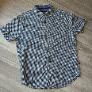 Aeropostale Men's Blue/White Checkered Short Sleeve Button Down Medium