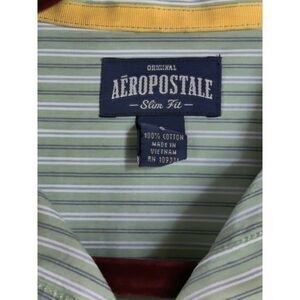 Aeropostale Mens Button Front Shirt Slim Fit Green Long Sleeve Striped Sz Small