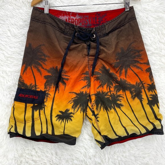 Aeropostale Men's Casual Multicolor Full Print Palms Board Shorts Size 32"