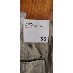 Keywords: Aeropostale, mens shorts, classic shorts, 9.5 inch inseam, stretch shorts, palm tree print, beige shorts, size 36, casual shorts, summer shorts, beach shorts, vacation shorts, new with tags