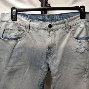 Aeropostale Men's Jeans, 34/34, Slim Straight White wash Blue, light distressing, 100% cotton, pre-owned