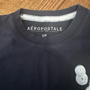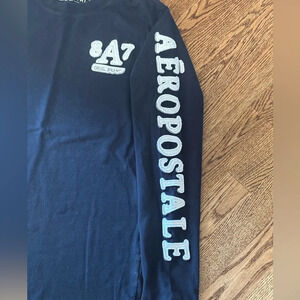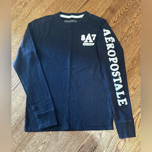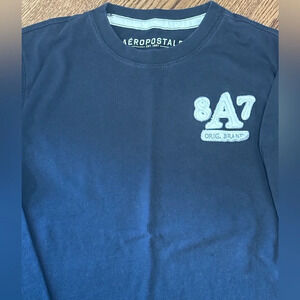 aeropostale mens long sleeve shirt, aeropostale a87 tee, navy blue logo shirt, mens small cotton top, varsity graphic tee, classic long sleeve shirt, everyday casual wear, fall winter layering, crew neck shirt men, preppy casual top, streetwear essential