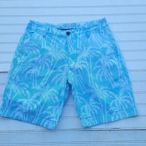 Aeropostale Men's Shorts Aqua Blue Size 30 Palm Tree 9" Inseam Casual Cotton