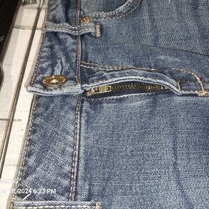 Distressing and patching as shown in photos. Rise 8.5 inches, waist 33 inches, inseam 5 inches. inventory #1466**