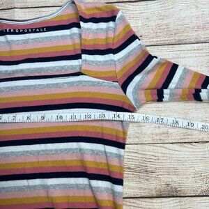 Aeropostale Multi-Color Striped Ribbed Long Sleeve Top Boatneck Large