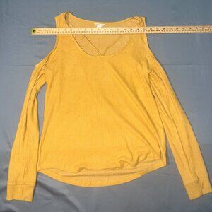 Aeropostale Mustard Yellow Cold Shoulder Long Sleeve Ribbed Shirt - Size M