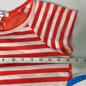 This super cute adorable lightweight Aeropostale coral and white striped top features a sheer anchor print slit tie back with short raglan sleeves.