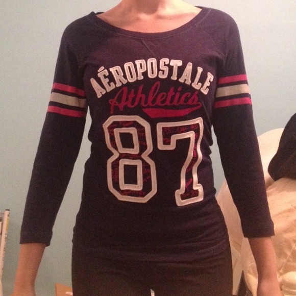 Aeropostale, 3/4 Sleeve, Navy Blue with Pink & White Writing, Pink & White Stripes on Sleeves, Perfect Condition-Never Been Worn, Size M