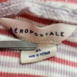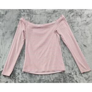 Aeropostale Off the Shoulder Long Sleeve Striped Lettuce-Trim Top Size XL Pink