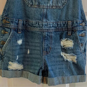 Aeropostale Overalls Shorts Womens Size Small Distressed Denim Jeans Shortalls