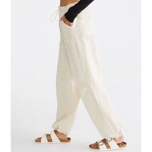 Aeropostale Baggy Parachute Cargo Pants Y2K Hip Hop Skate Punk Womens XL Beige