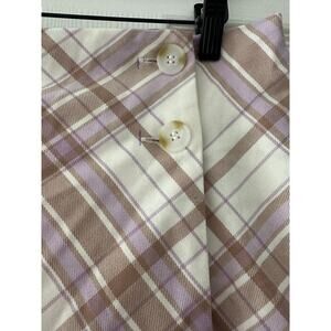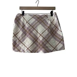 Aeropostale Plaid Mid-Rise Wrap Mini Skirt in white with purple and tan plaid design. Size Medium. New with Tags!